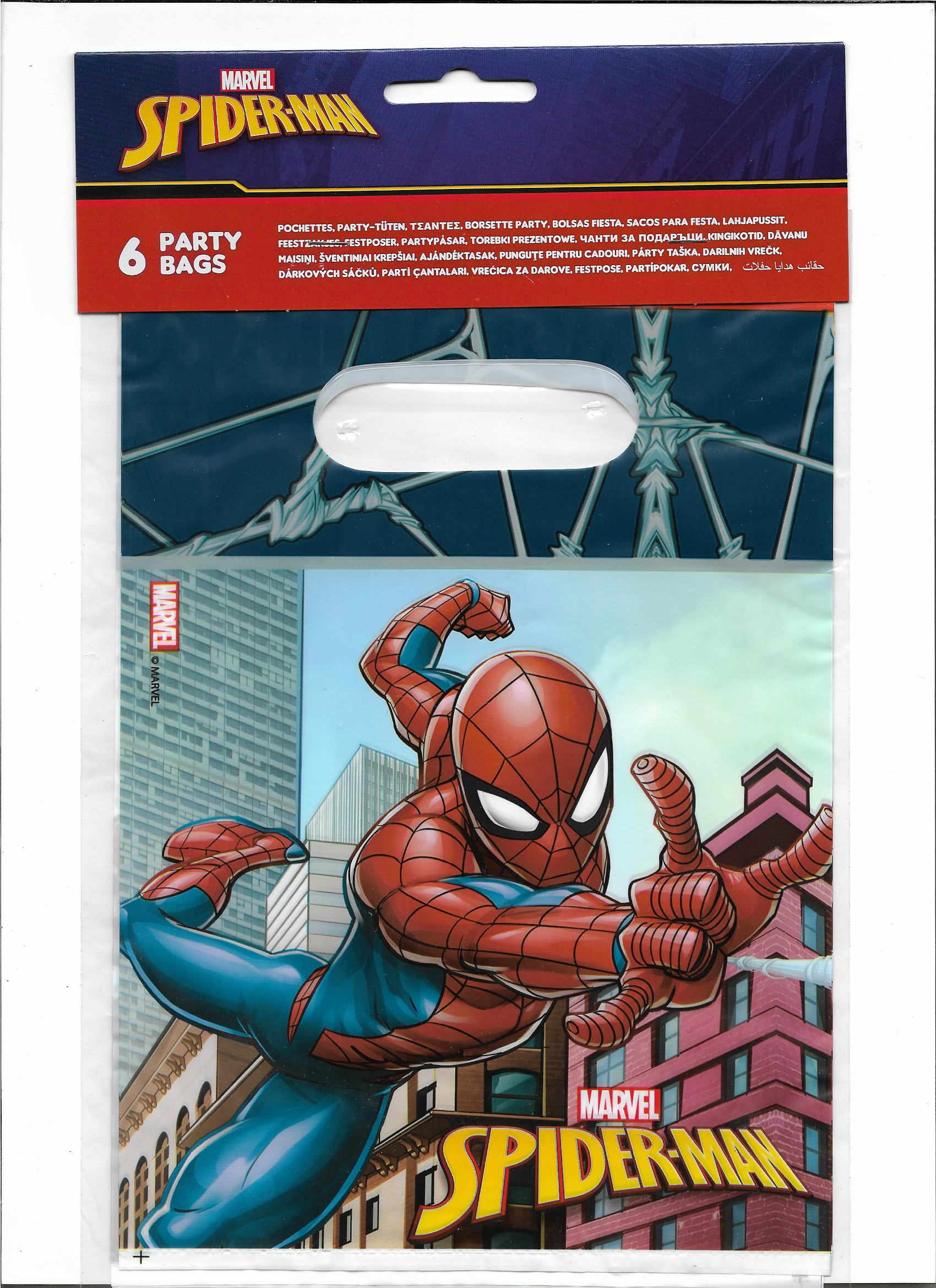Inclui 6 sacos de plástico com desenhos Spider-Man com 17 x 23cm da marca Decorata Party.